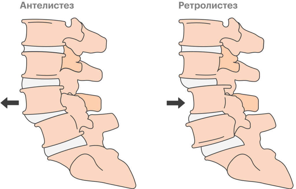 Спондилолистез — это смещением одного позвонка относительно другого, чаще всего наблюдается смещение четвертого (L4) или пятого (L5) позвонка в поясничном отделе позвоночника, что может приводить к клиническим проявлениям, включая боль в пояснице и/или боль в ногах.