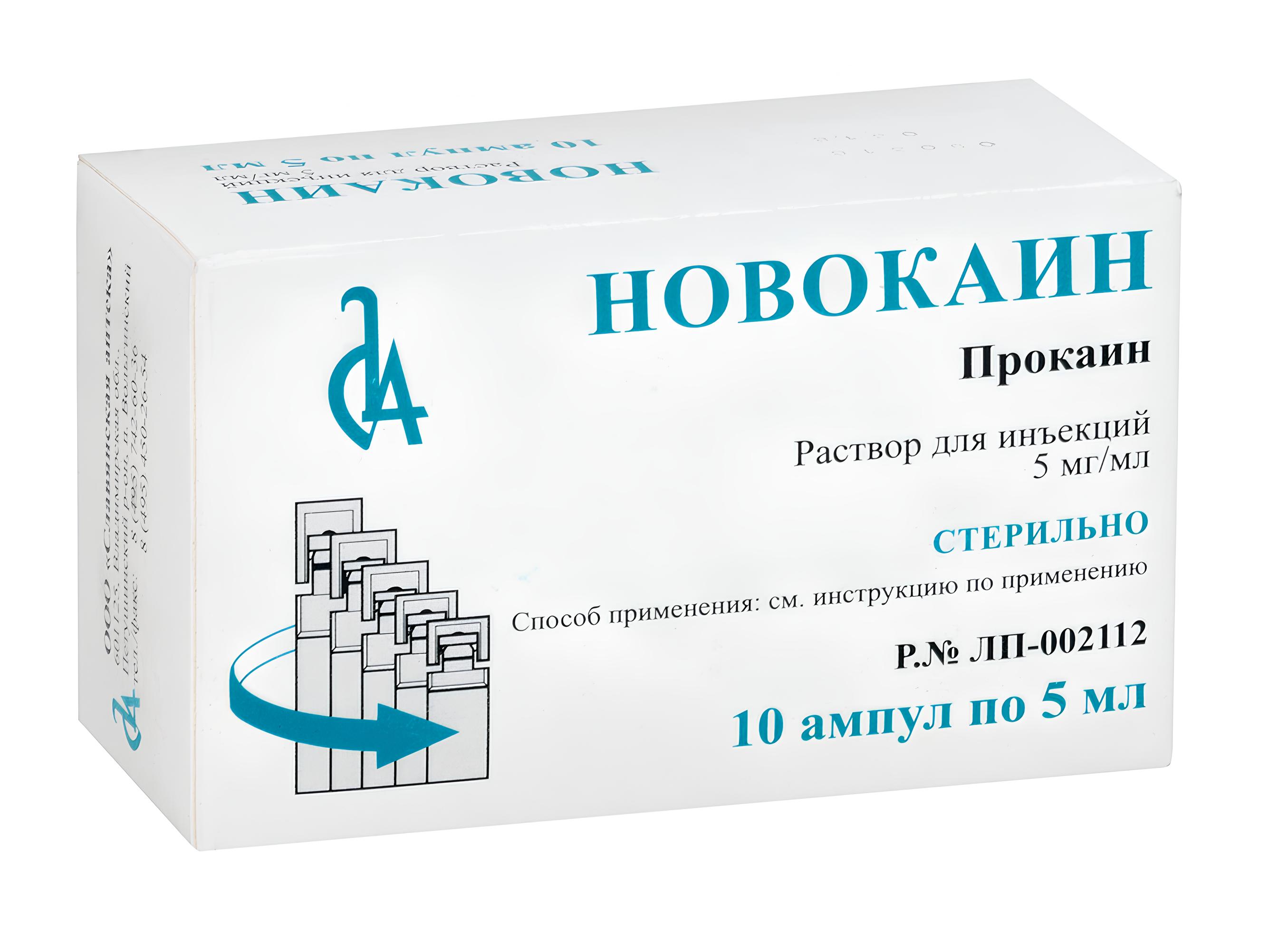 Новокаин. Самый распространенный анестетик. Он на 80% усваивается организмом и выводится за 8 часов. Облегчение наступает через 2-3 минуты после введения, продолжительность действия до двух часов. Используют 0,25%, 0,5%, 1% и 2% растворы. Считается наиболее безопасным средством устранения боли с минимумом побочных эффектов.