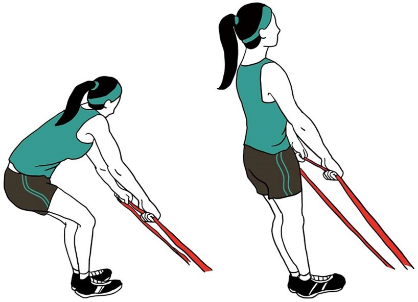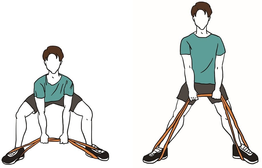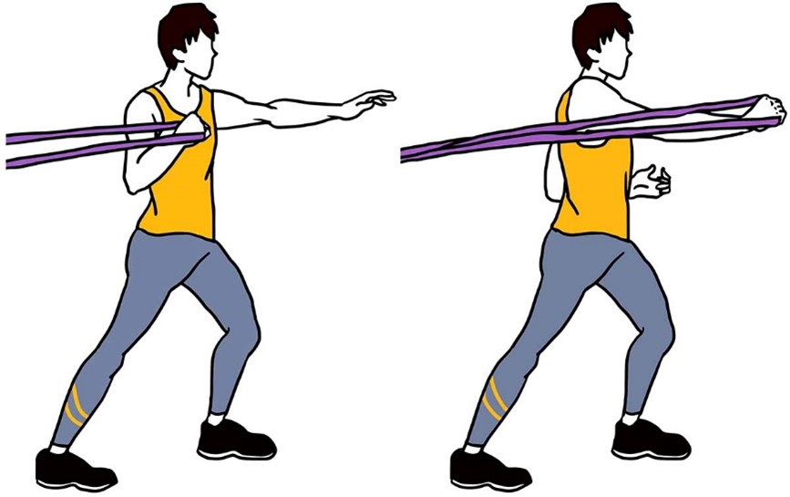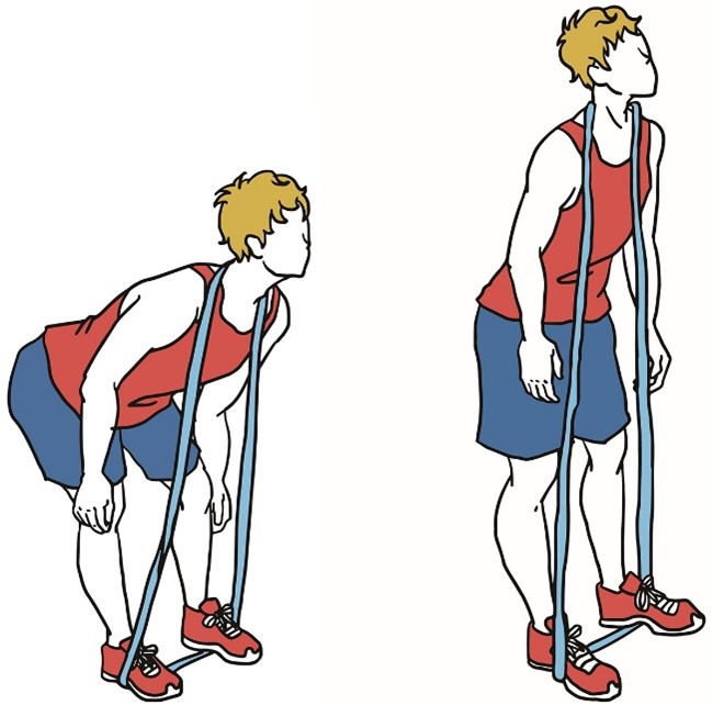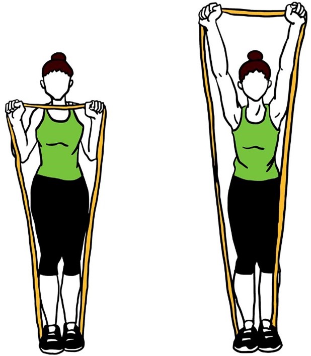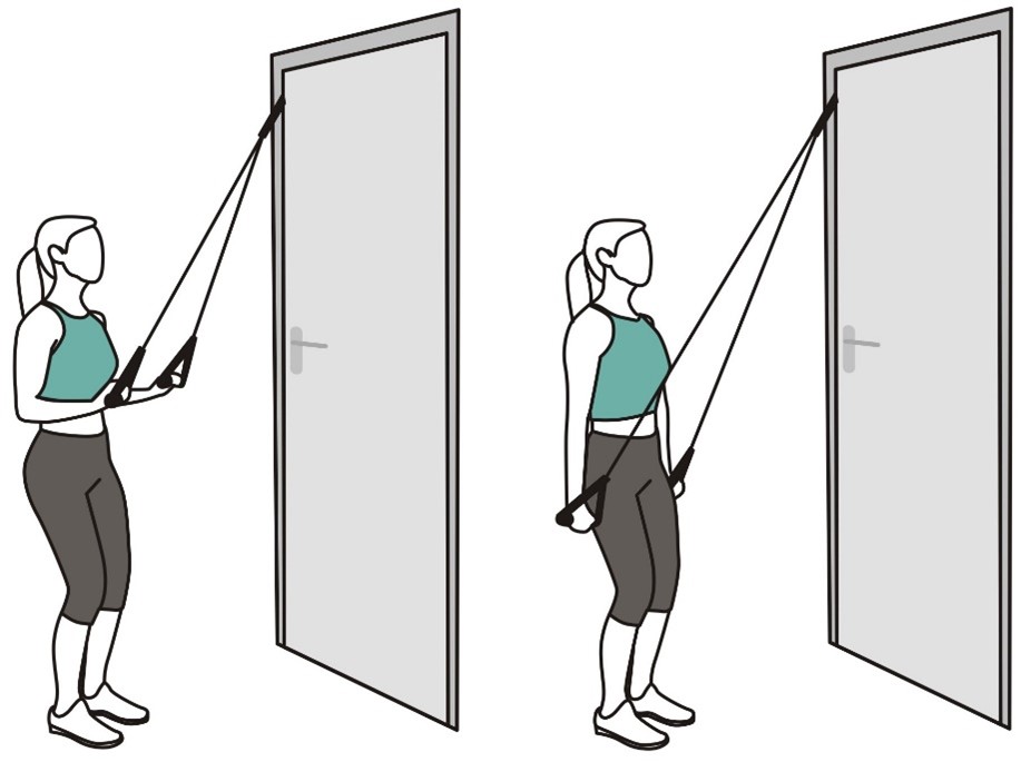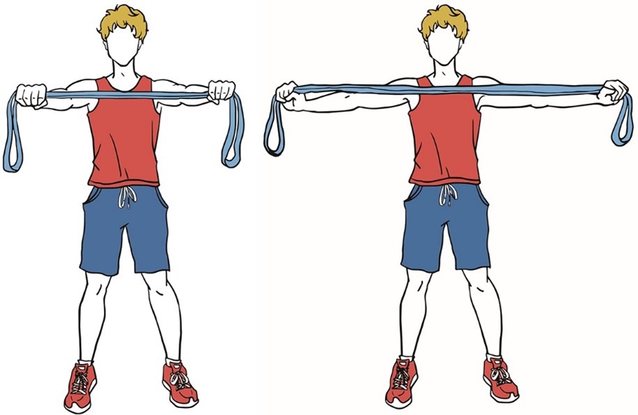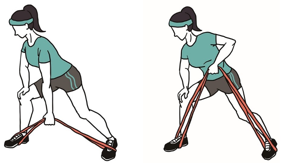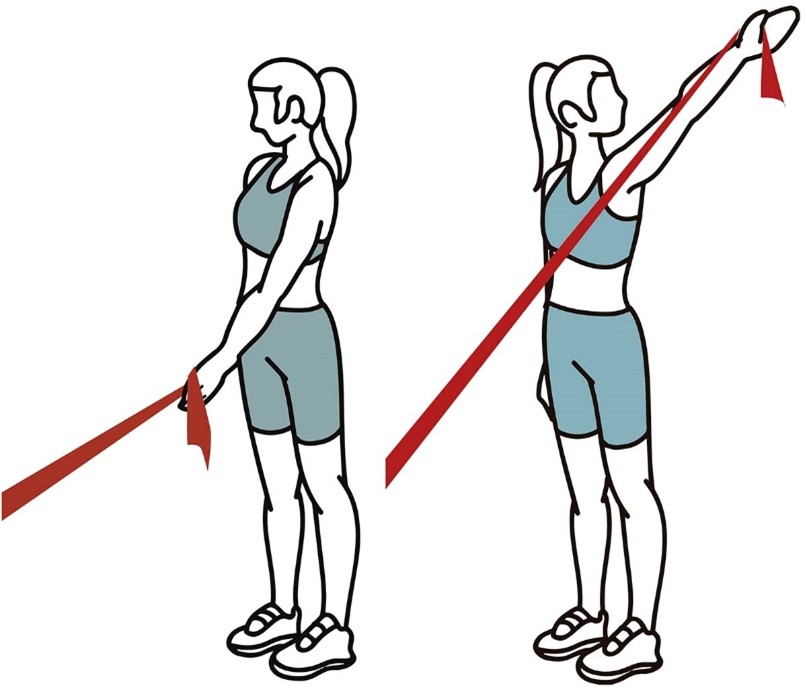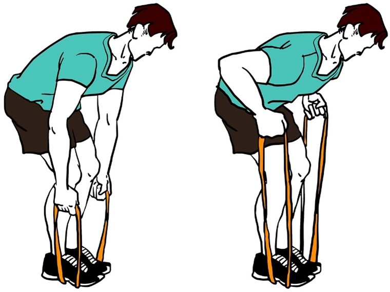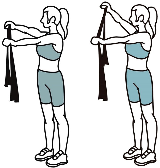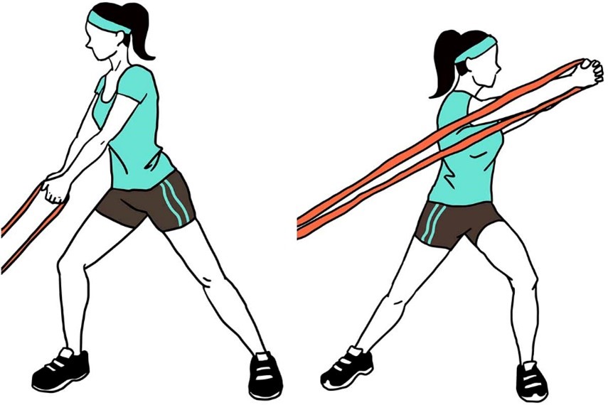- Держите ленту сбоку согнув локоть, в положении стоя, как в исходном положении (показано на изображении).