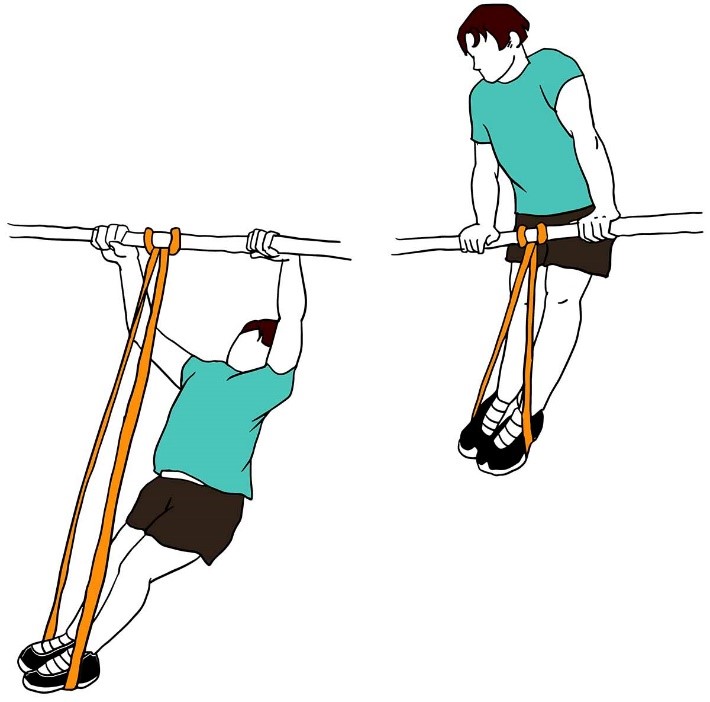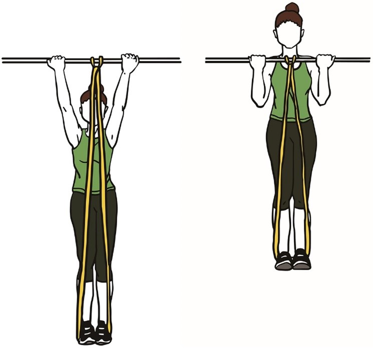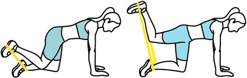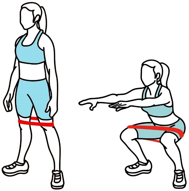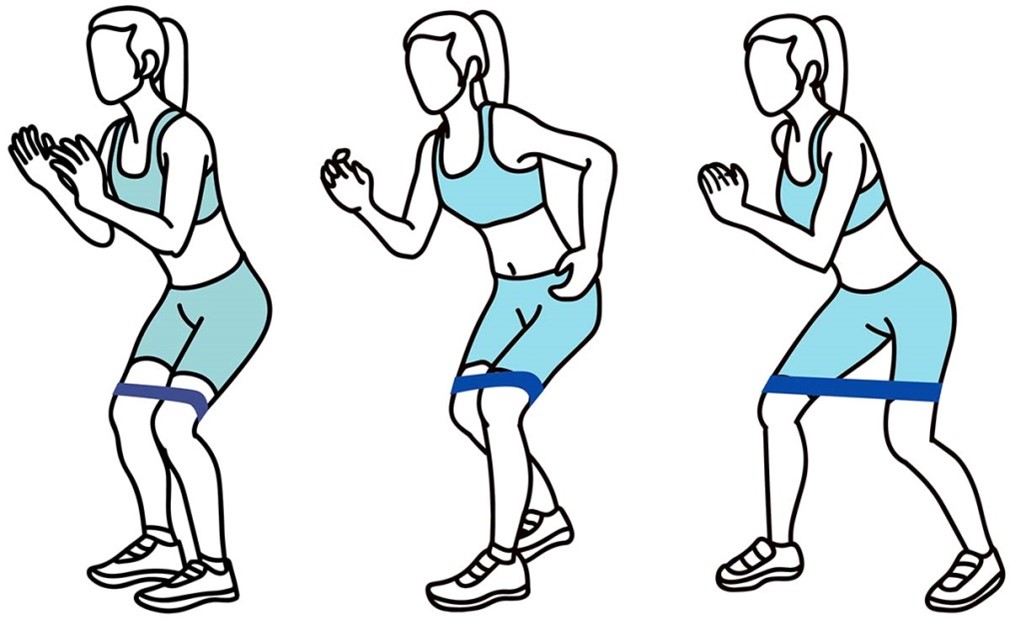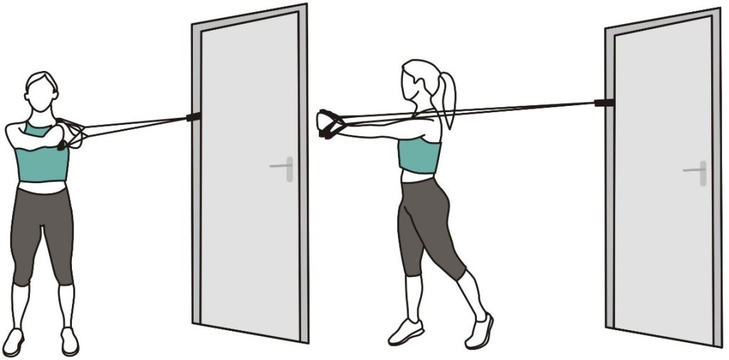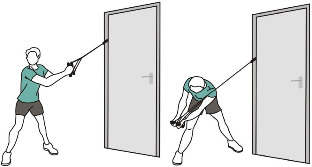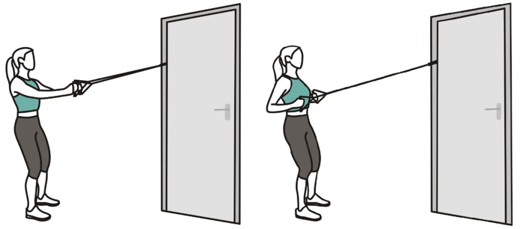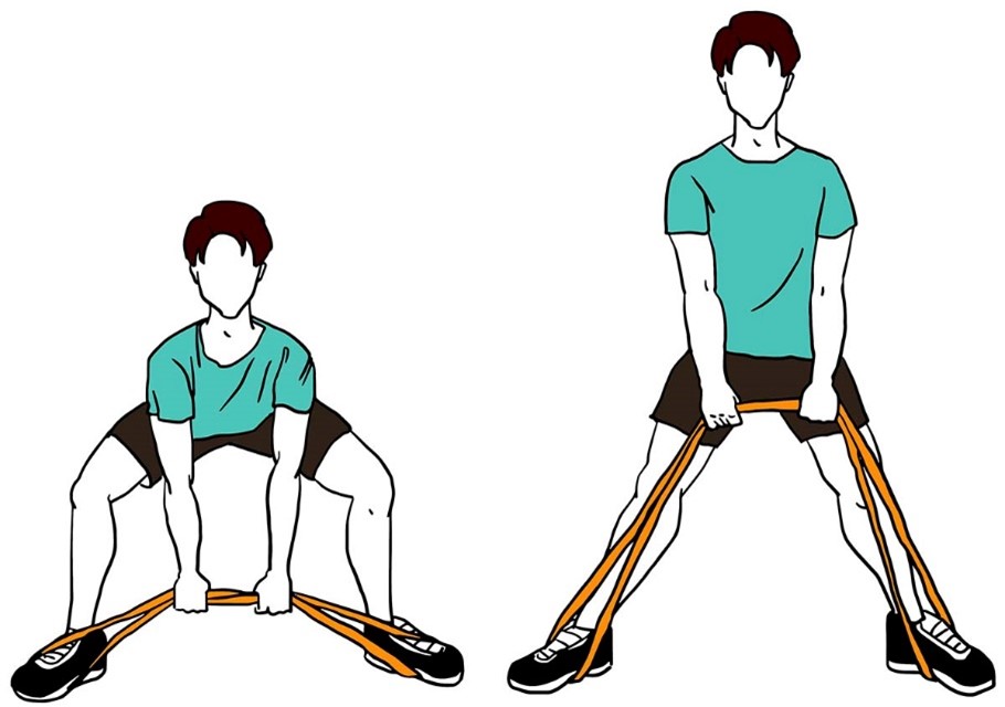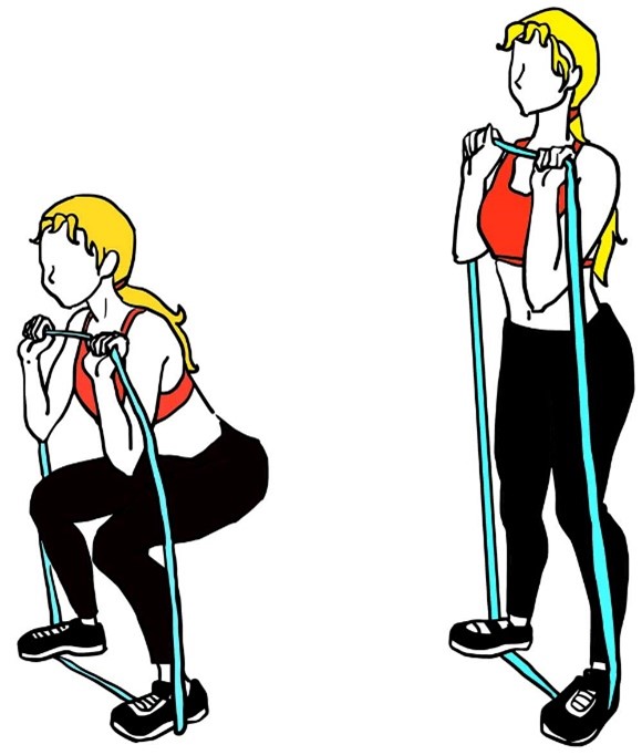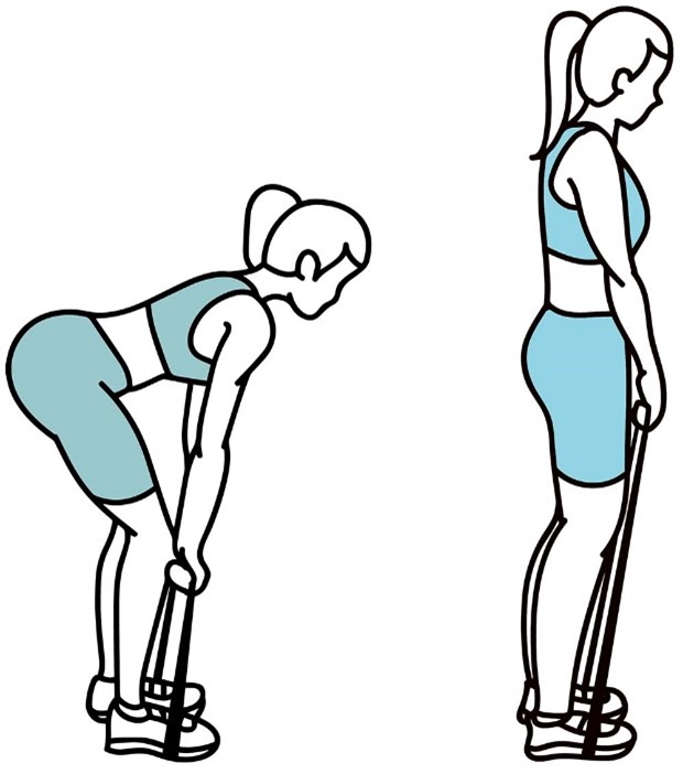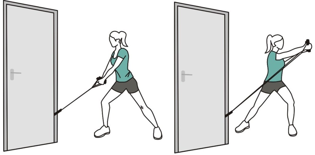 - Держите ленту сбоку согнув локоть, в положении стоя, как в исходном положении (показано на изображении).