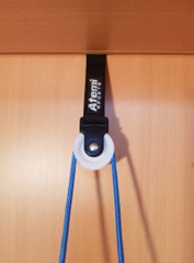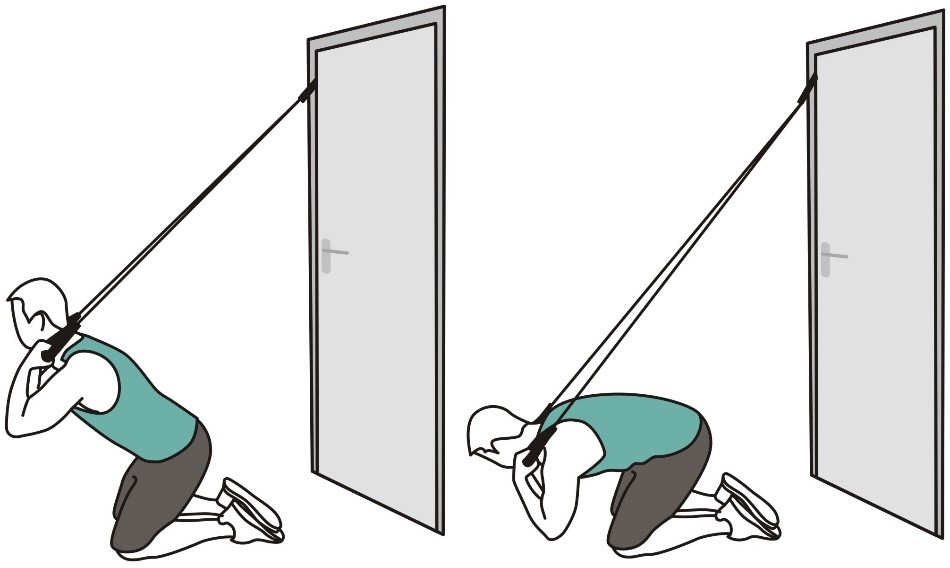 - Используя резинку, сделайте петлю длиной 50 сантиметров и свяжите концы вместе. Наденьте петлю на дверную ручку или другой устойчивый предмет.