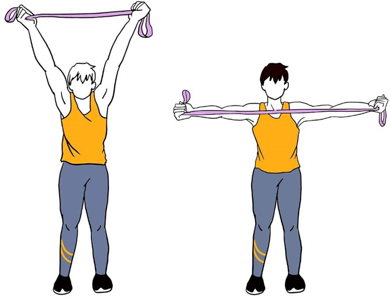 - Держите руку ладонью вниз и поднимайте вверх так, чтобы она составила одну линию с плечами.