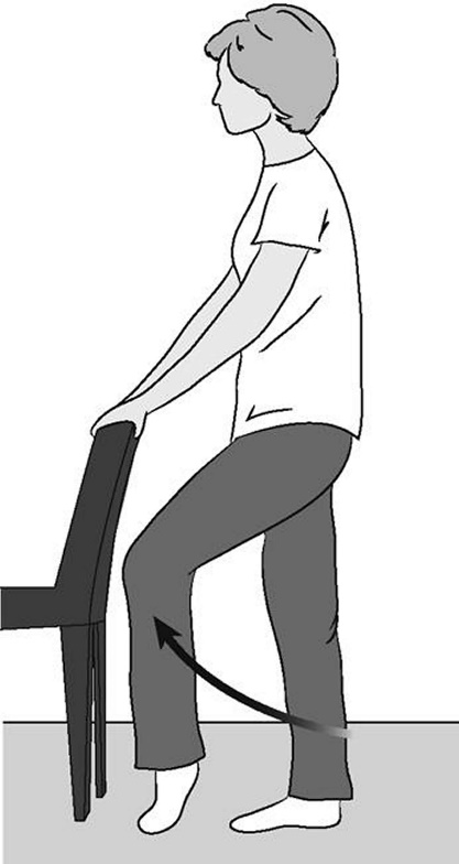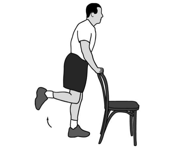 - Держитесь за спинку стула или стену для равновесия.
