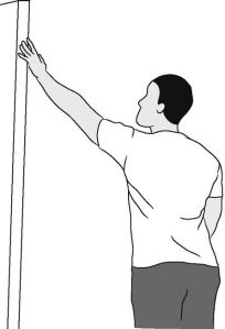 - Встаньте к стене поврежденным плечом.