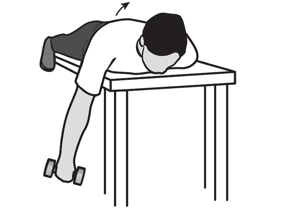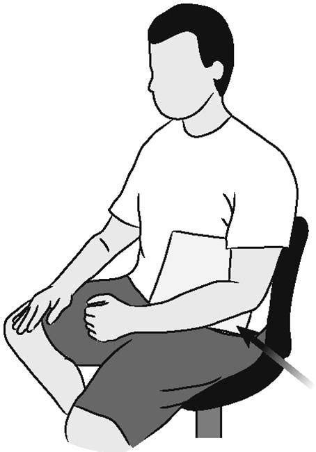 - Поставьте колено на скамью или стул для опоры, наклоняясь вперед так, чтобы рука помогала поддерживать равновесие. Положите другую руку на бок, ладонь обращена к телу.