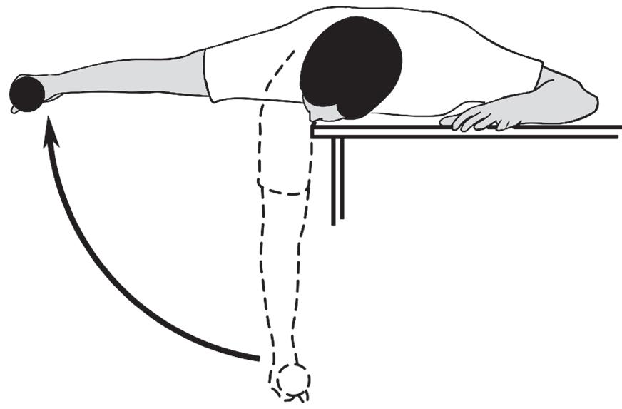 - Лягте на живот на стол или кровать. Свесьте поврежденную руку за борт.