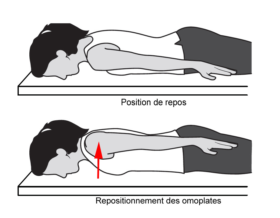 - Лягте на бок на твердую ровную поверхность, подложив под себя пораженное плечо и согнув руку, как на рисунке. Вы можете использовать подушку под головой для комфорта, если это необходимо.