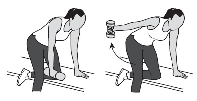 - Держите локоть прямо и постепенно поднимайте вес, сжимая лопатку в противоположную сторону, насколько это возможно.