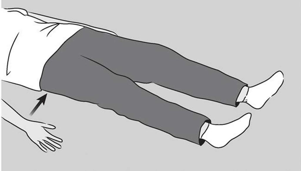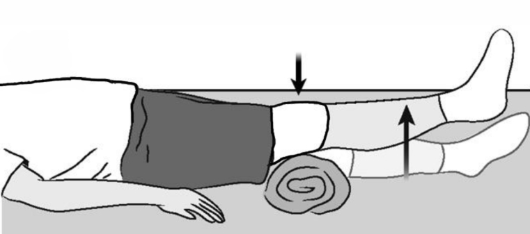 - Лягте на бок на твердую ровную поверхность, положив неповрежденную руку под голову.